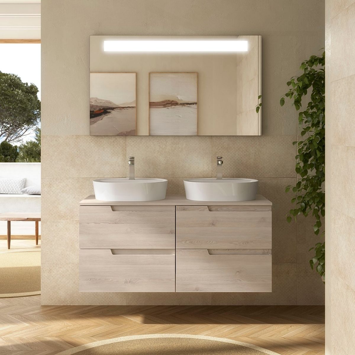 Mobile Bagno Sospeso 120 cm per Doppio Lavabo d’Appoggio – WILMA