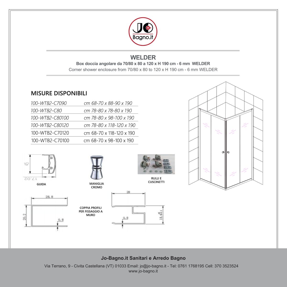 Il box doccia angolare Welder rappresenta una soluzione elegante e funzionale per l’arredo del bagno moderno. Realizzato con cristallo temperato trasparente e profili in alluminio cromato, unisce design minimale, solidità strutturale e durata nel tempo.