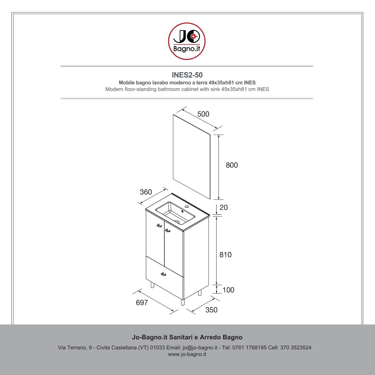 Mobile Bagno a Terra 50 cm con Lavabo Integrato – INES