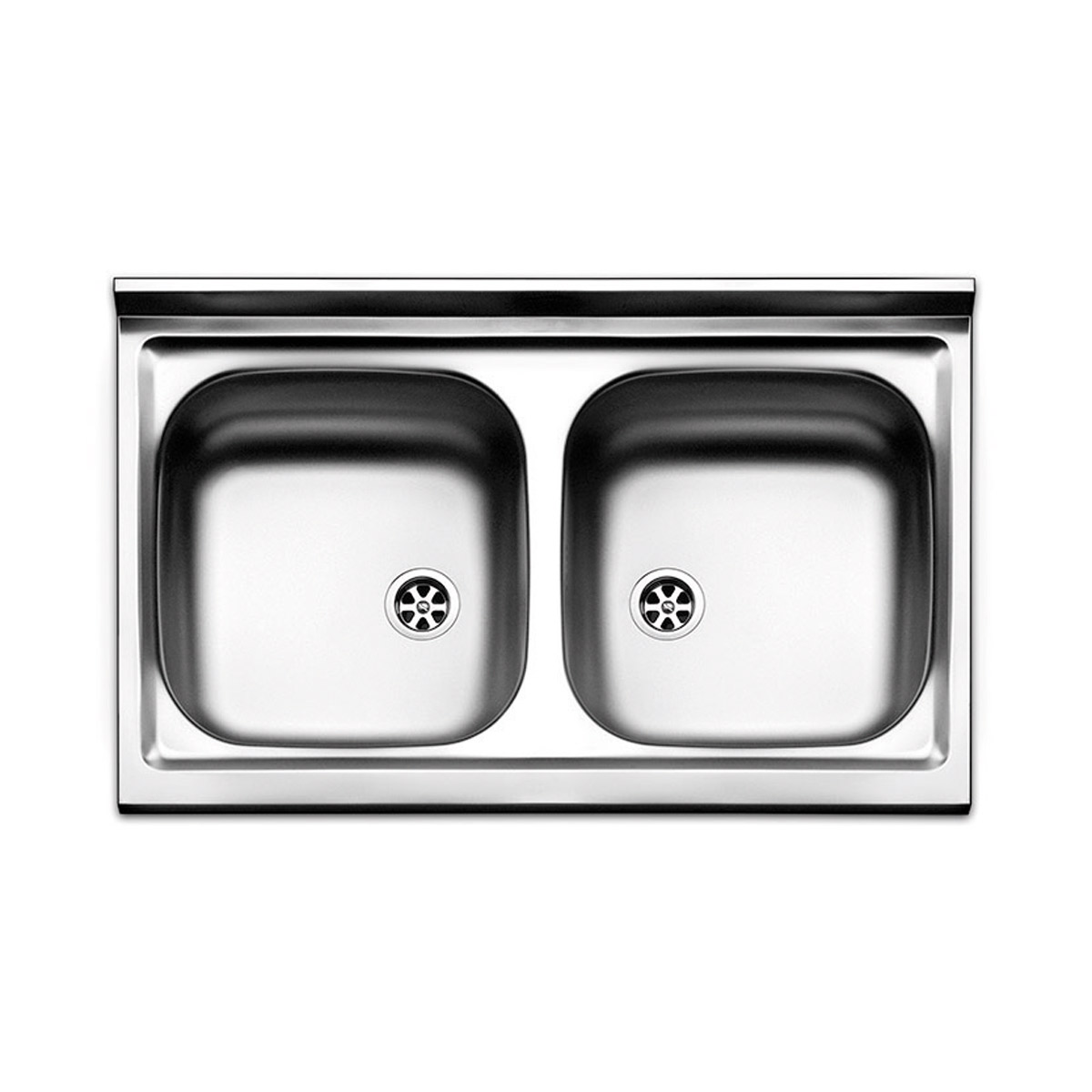 Lavello cucina in acciaio inox 80 x 50 a due vasche senza sgocciolatoio