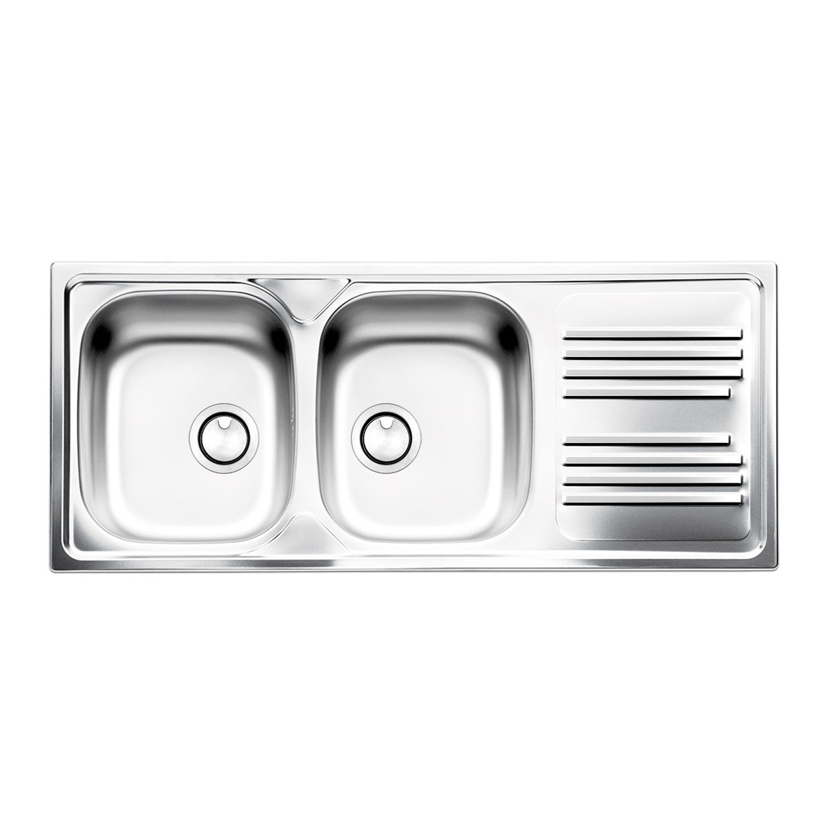 Lavello cucina in acciaio stampato inox 2 vasche 116 x 50 con gocciolatoio SX/DX