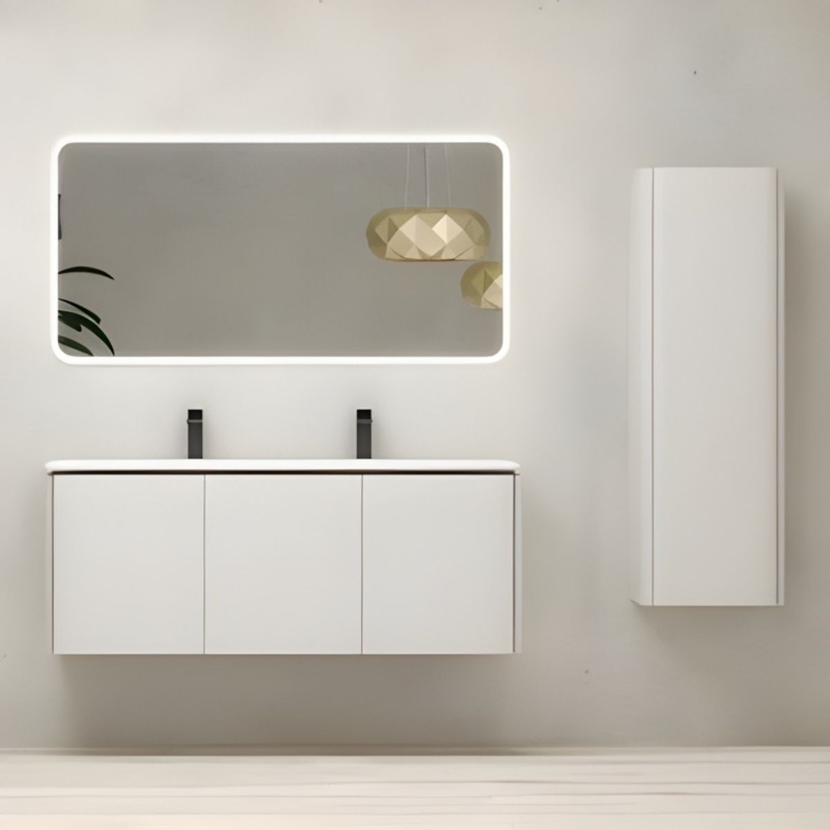 Mobile bagno sospeso 140 cm con lavabo in resina a doppia vasca e fianchi stondati MARYL