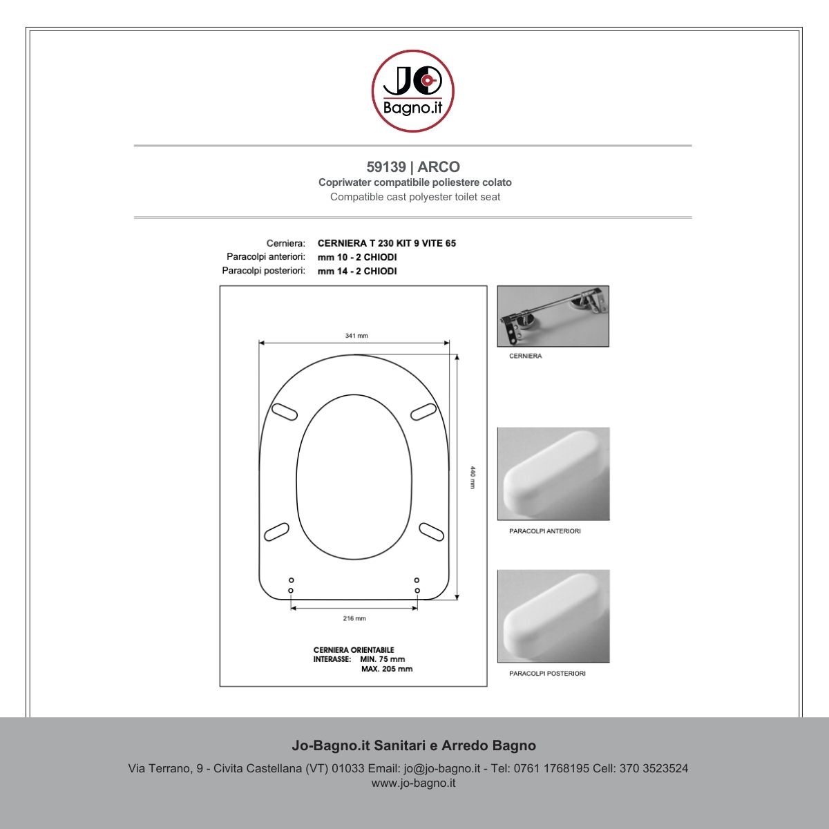 Misure: x:34,1 y: 44 z: Min. 7.5 - Max. 20.5