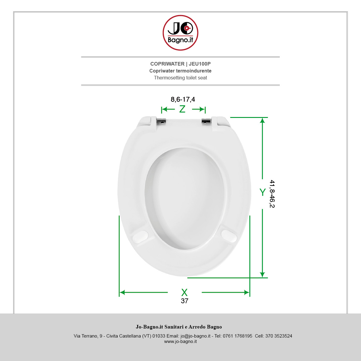 La tavoletta wc sarà fornita completa di seduta con tecnologia TOP FIXING & TAKE OFF, coperchio e cerniere pronto per essere montato sul tuo sanitario. Il Copri WC in Termoindurente garantisce una totale protezione dagli agenti esterni, un’assoluta impermeabilità ed il mantenimento della brillantezza dei colori nel tempo. Installazione veloce da sopra con sgancio rapido della tavoletta.