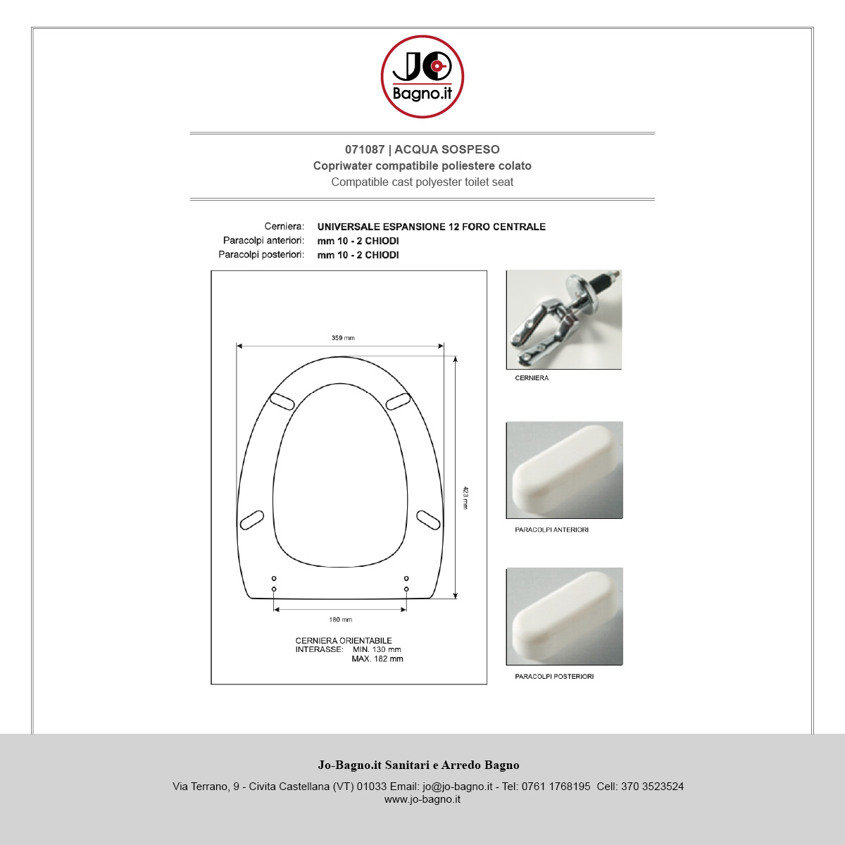 Misure: X: 35,9 Y: 42,3 Z: 13-18,2
