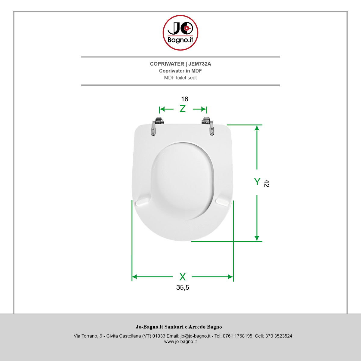 X Larghezza Seduta - Y Lunghezza (Cerniere Escluse) - Z Interasse Fori