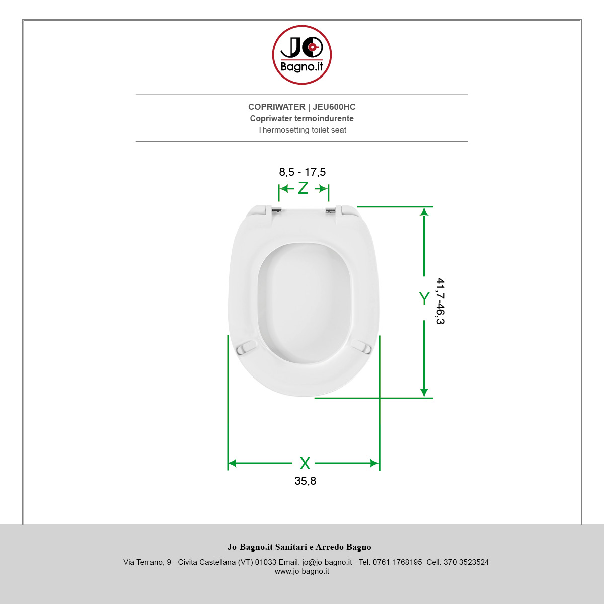 La tavoletta wc sarà fornita completa di seduta con tecnologia TOP FIXING & TAKE OFF, coperchio e cerniere pronto per essere montato sul tuo sanitario. Il Copri WC in Termoindurente garantisce una totale protezione dagli agenti esterni, un’assoluta impermeabilità ed il mantenimento della brillantezza dei colori nel tempo. Installazione veloce da sopra con sgancio rapido della tavoletta.