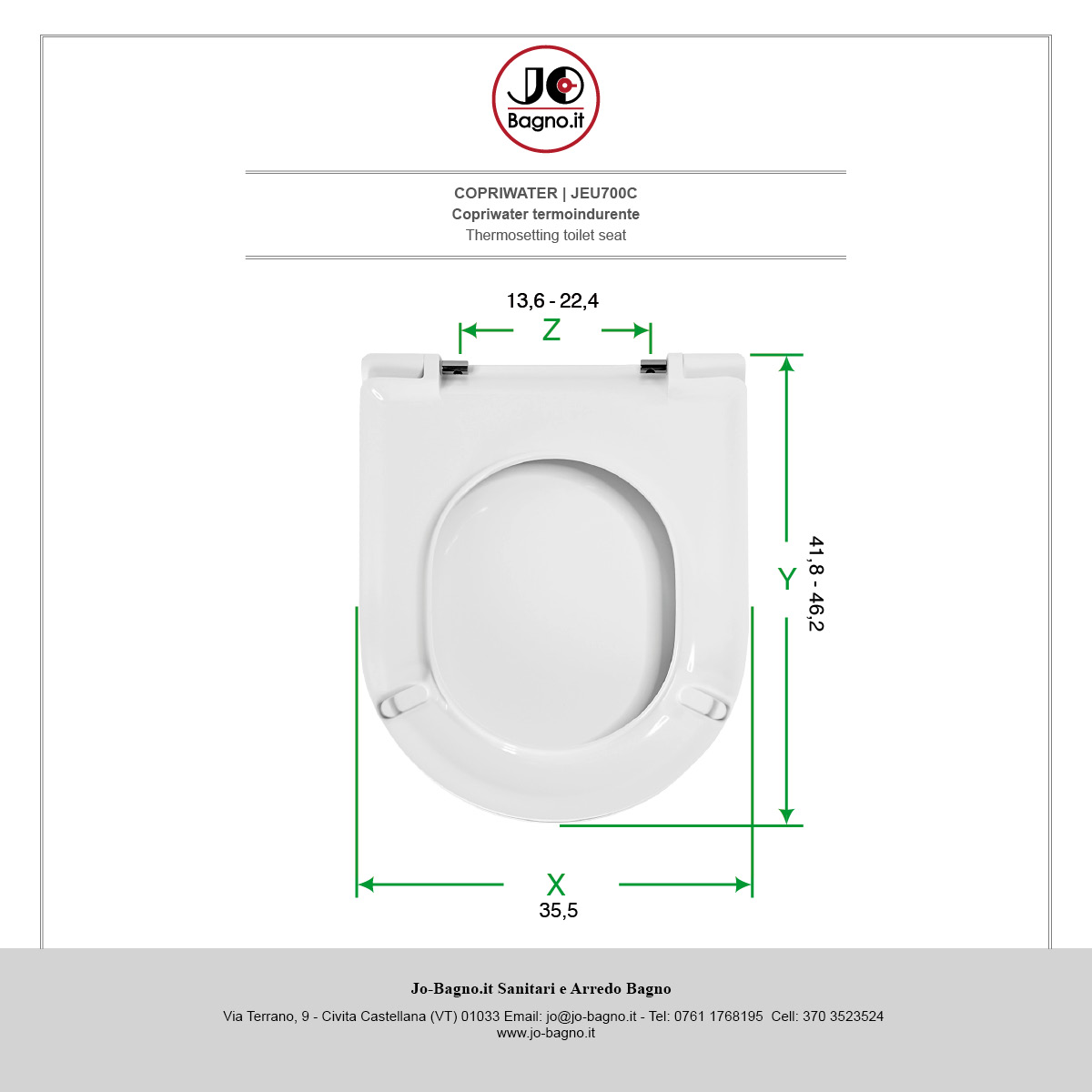 X Larghezza Seduta - Y Lunghezza (Cerniere Escluse) - Z Interasse Fori - Misura in cm