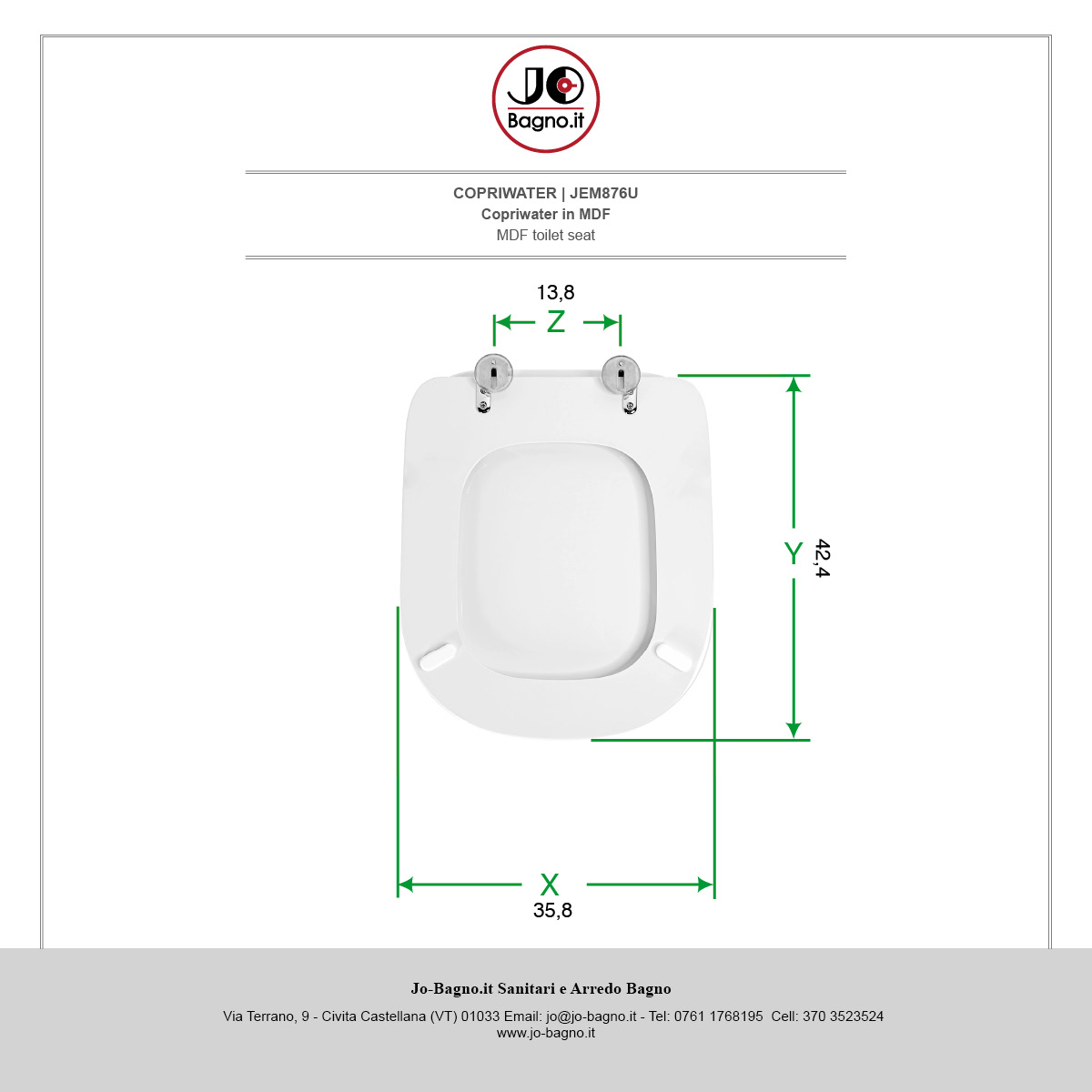 X Larghezza Seduta - Y Lunghezza (Cerniere Escluse) - Z Interasse Fori