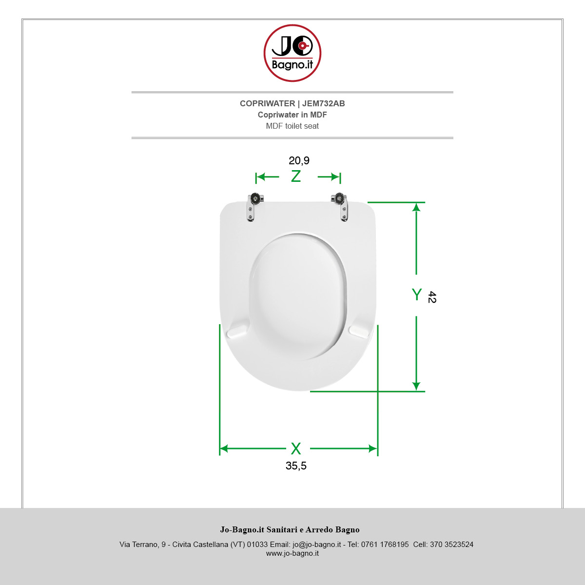 X Larghezza Seduta - Y Lunghezza (Cerniere Escluse) - Z Interasse Fori