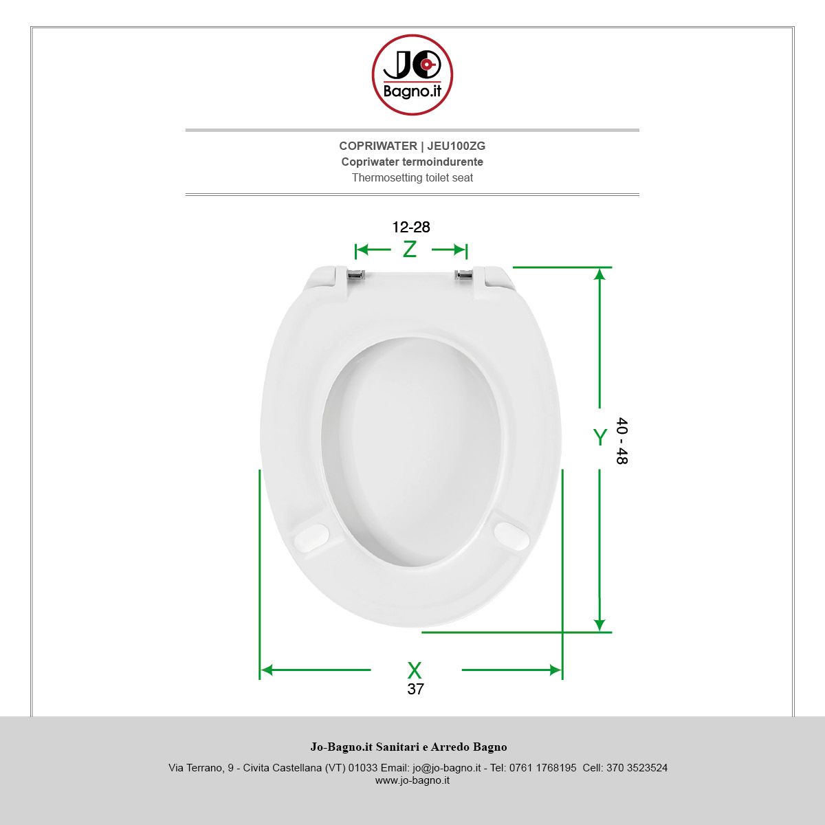 X 37 Larghezza Seduta - Y 40 - 48 Lunghezza (Cerniere Escluse) - Z 12 - 28 Interasse Fori - Misura in cm
