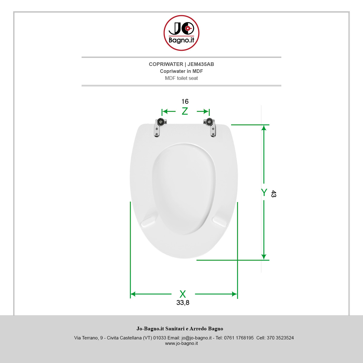 X Larghezza Seduta - Y Lunghezza (Cerniere Escluse) - Z Interasse Fori