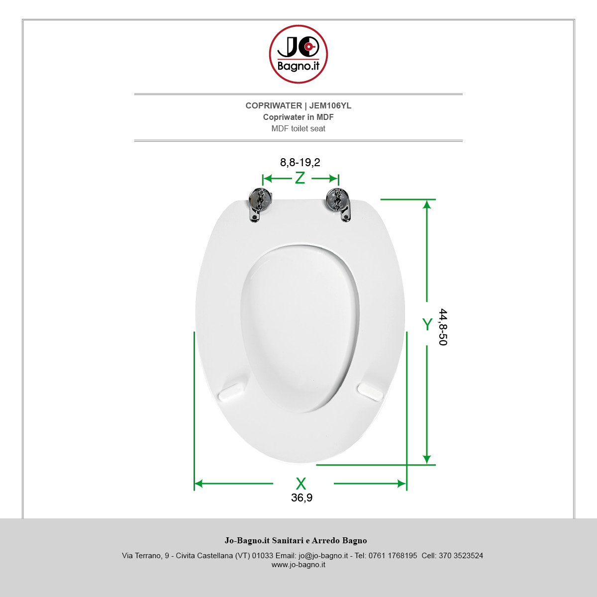 X Larghezza Seduta - Y Lunghezza (Cerniere Escluse) - Z Interasse Fori