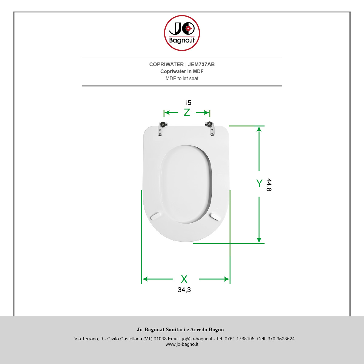 X Larghezza Seduta - Y Lunghezza (Cerniere Escluse) - Z Interasse Fori