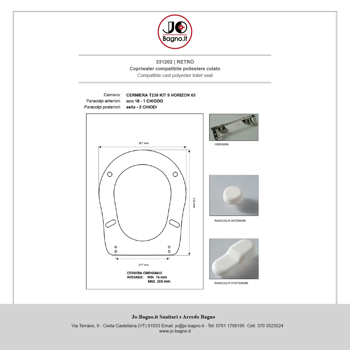 * Il colorato (bianco standard Escluso) è considerato un Prodotto Personalizzato.