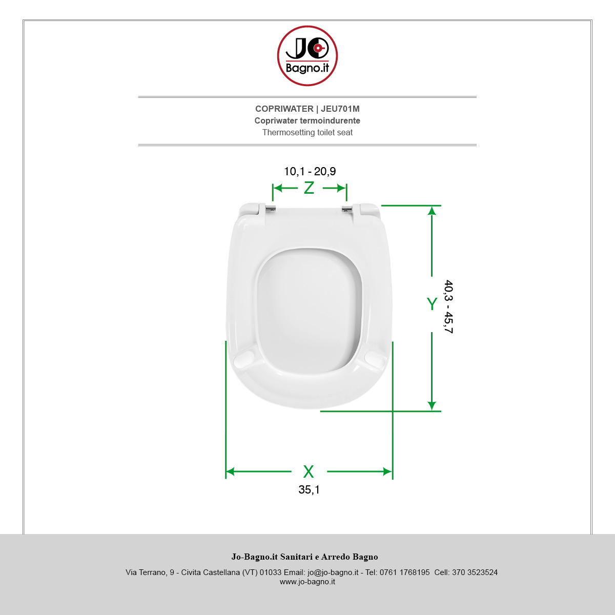 X Larghezza Seduta - Y Lunghezza (Cerniere Escluse) - Z Interasse Fori - Misura in cm