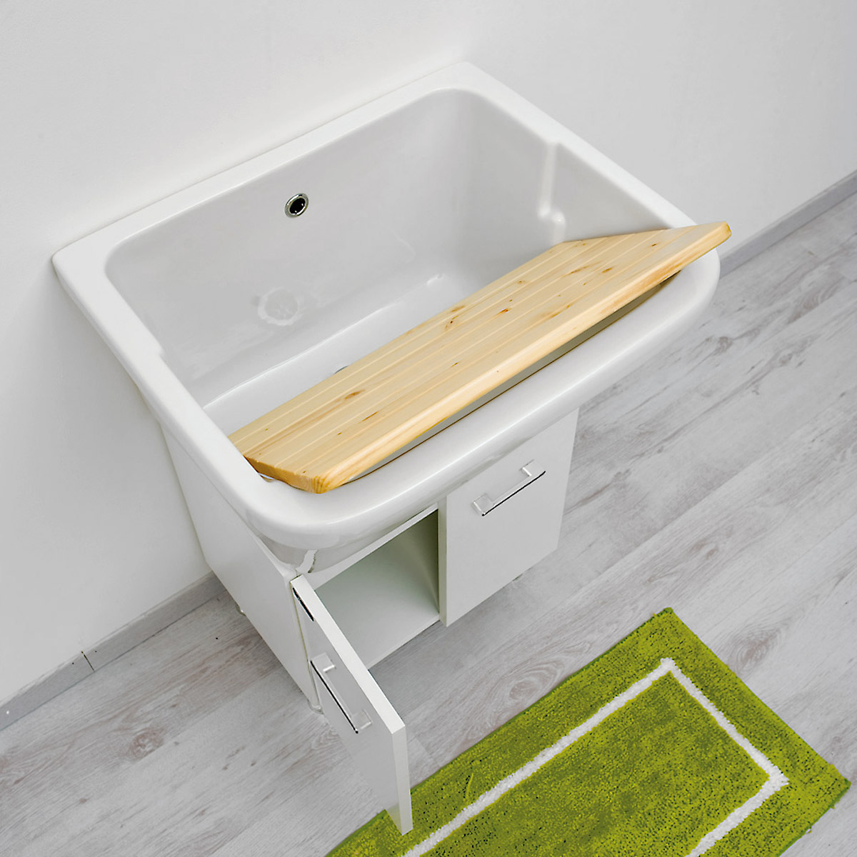 Per favorire invece il lavaggio e lo strofinamento dei panni da lavare, è consigliato abbinare alla vasca lavatoio 75x60 anche la sua asse in legno, dalle dimensioni molto ampie, studiata appositamente nelle stesse misure nel pilozzo, la quale potrà essere inserita all'interno delle scanalature presenti ai laterali della vasca.