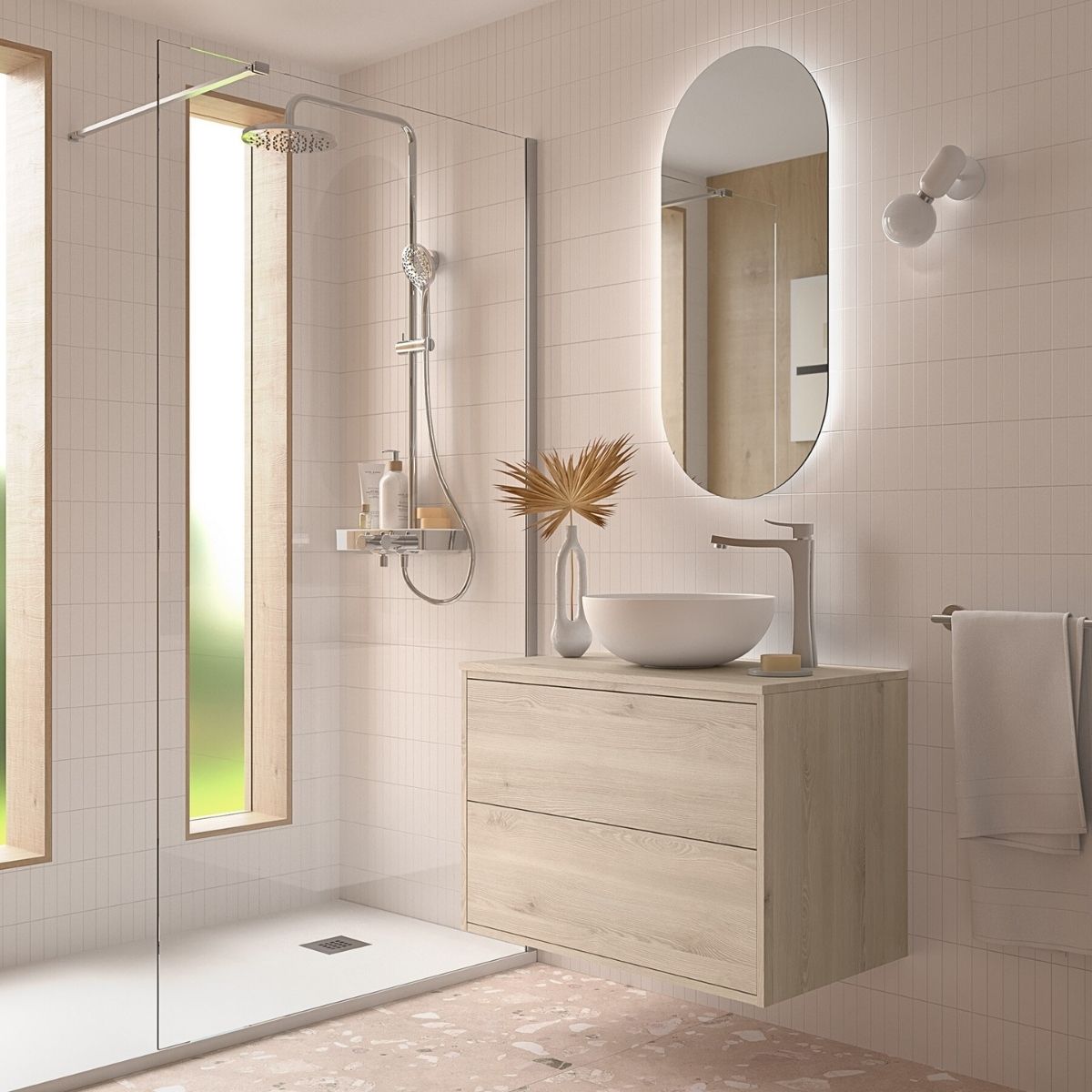 Pensato per chi desidera uno spazio bagno ordinato ma elegante, il modello da 80 cm offre un maggiore piano d'appoggio e più capienza, pur mantenendo le linee leggere e sospese che contraddistinguono la serie OPTICAL2.