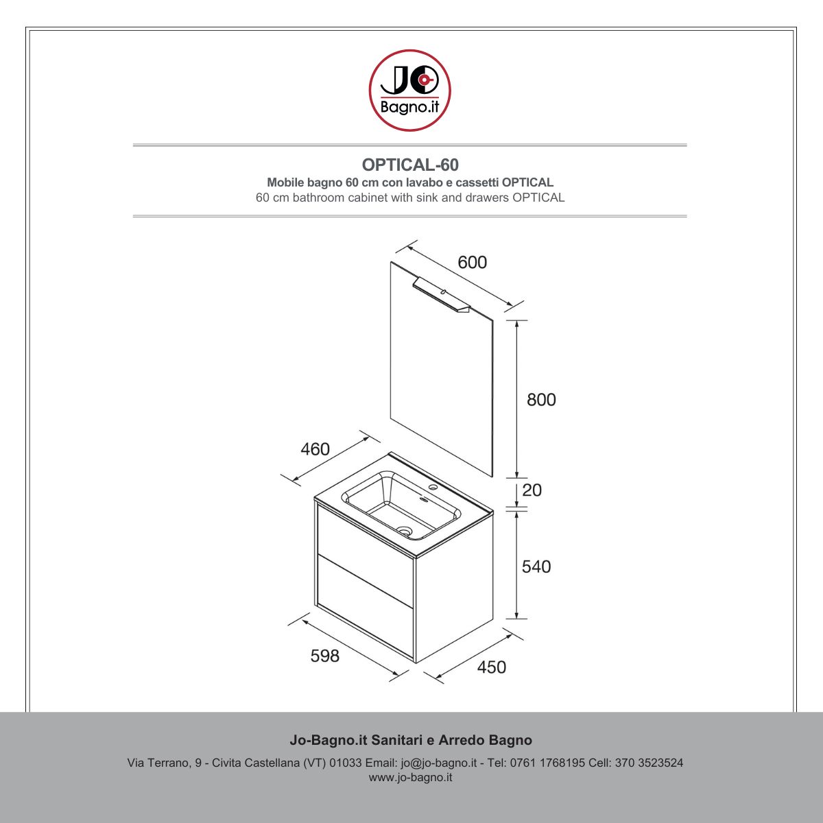 OPTICAL 60 cm è la soluzione perfetta per chi ama il design sobrio e funzionale. Un mobile bagno sospeso compatto che unisce estetica, comfort e qualità costruttiva, disponibile ora su Jo-Bagno.it.