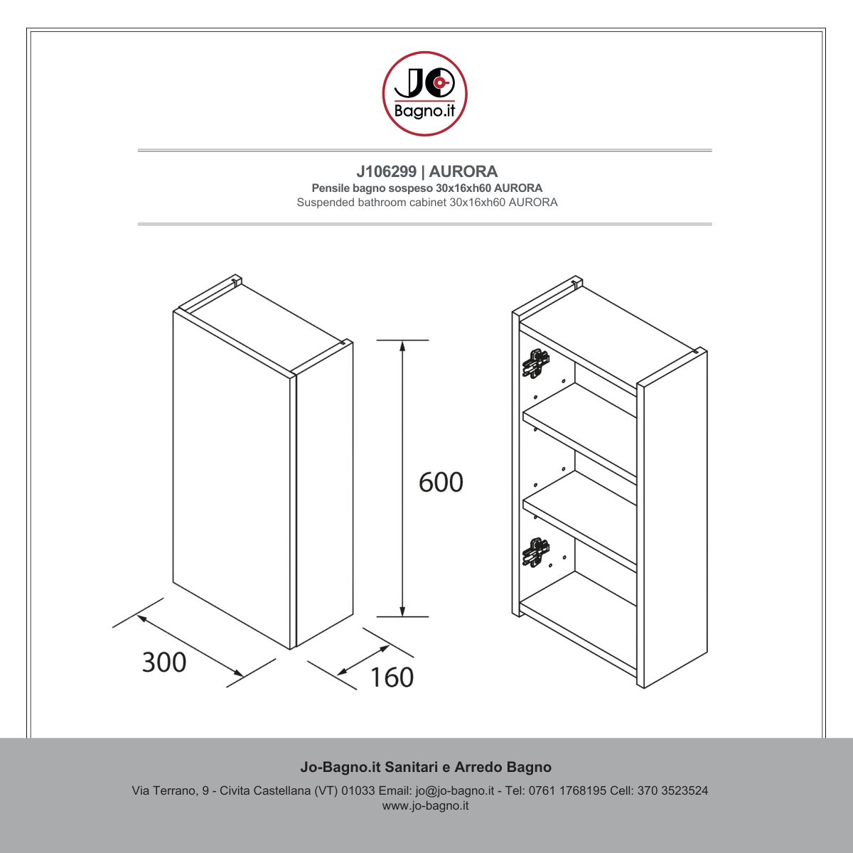 Pensile Multiuso un'anta AURORA con ripiani interni – 30x16x60 cm