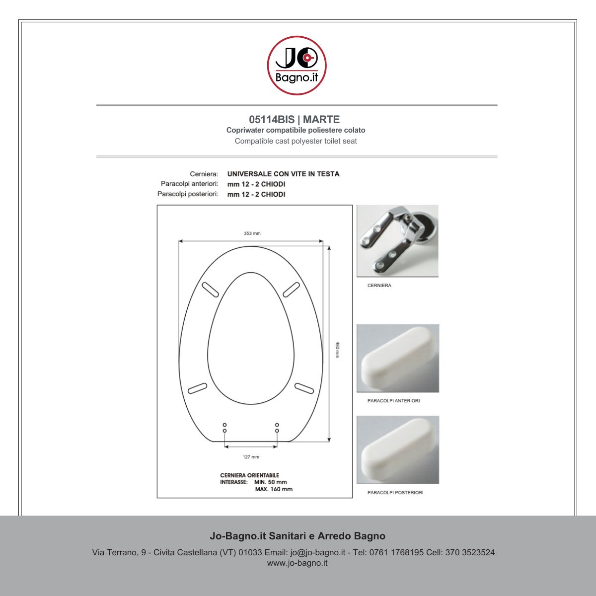Copriwater compatibile con la serie Marte della Ceramica Azzurra