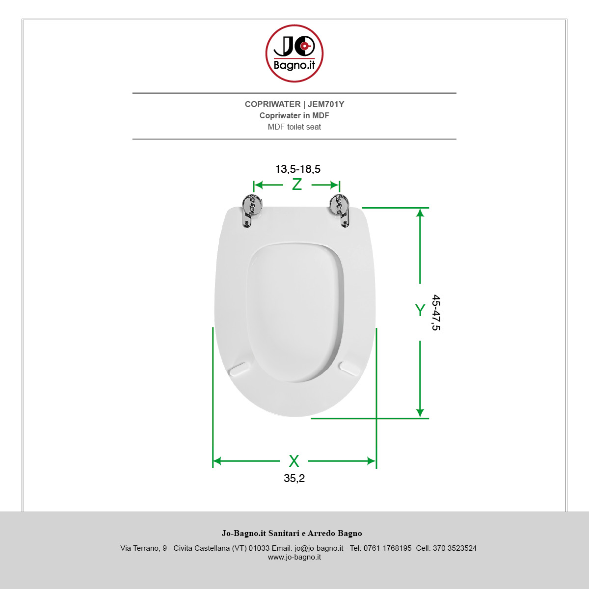 X Larghezza Seduta - Y Lunghezza (Cerniere Escluse) - Z Interasse Fori