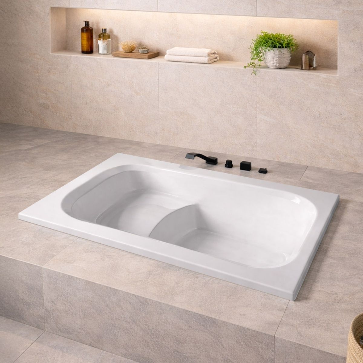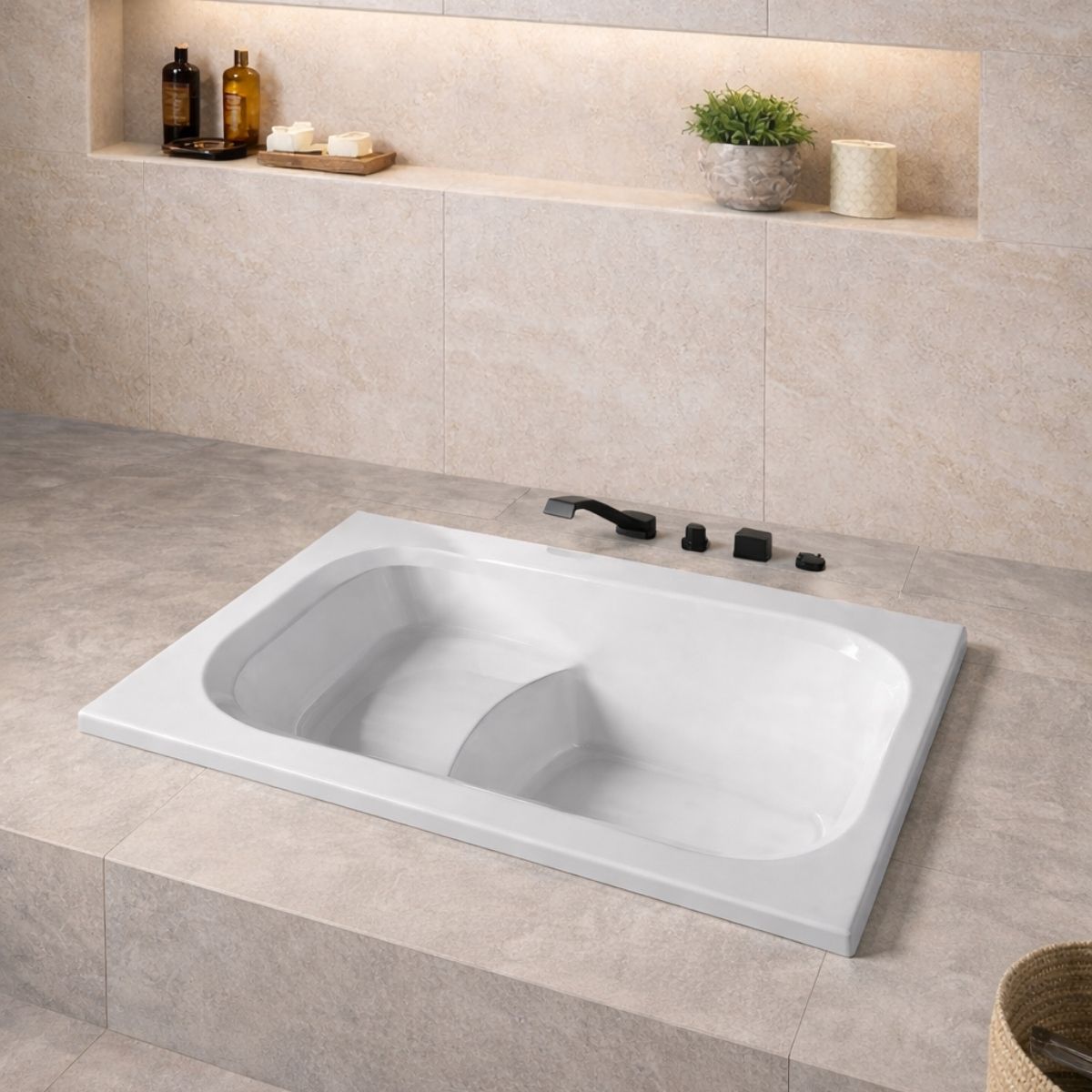 La vasca da bagno Cassia Mini con la sua forma rettangolare classica e le linee pulite ed essenziali, unisce eleganza e funzionalità, adattandosi perfettamente sia agli ambienti moderni che a quelli più tradizionali.