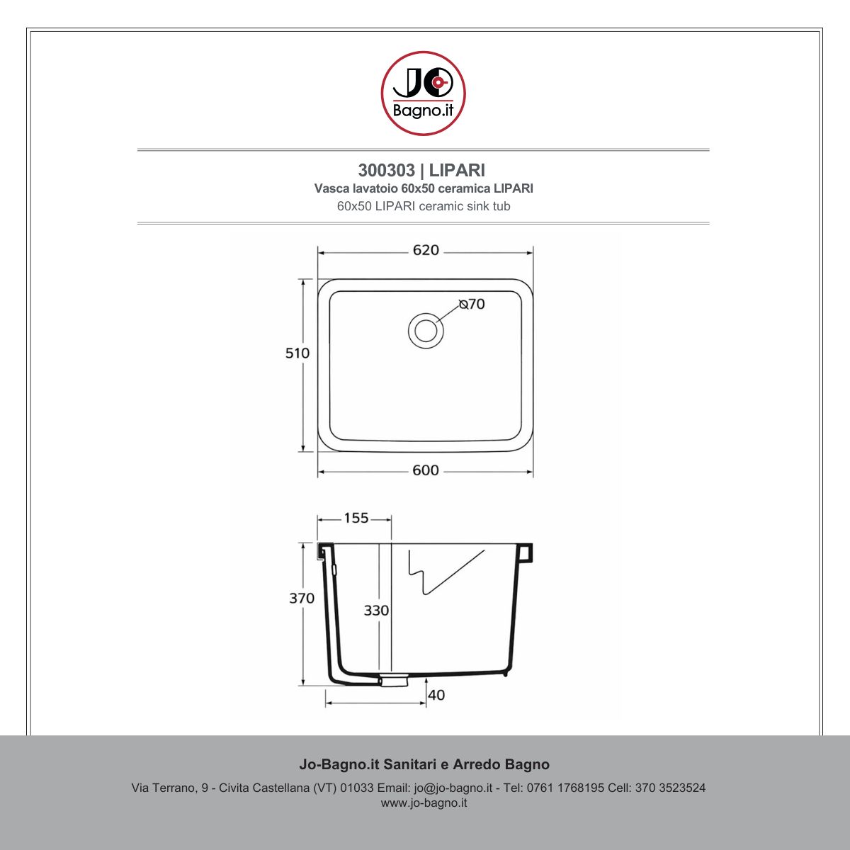 La vasca in ceramica 60x50 Lipari può essere installata anche completamente all'esterno posizionata con le Staffe in Acciaio per Lavatoio (Versione a Terra) o con Muriccioli in Ceramica. Lavasca in ceramica 60x50 è smaltata anche all'esterno.