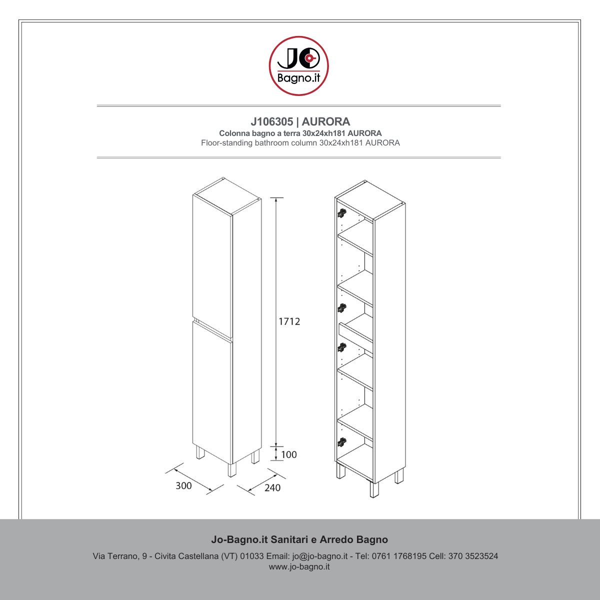 Con le sue dimensioni di 30 x 24 x 181 cm, AURORA è perfetta per qualsiasi tipo di bagno che sia di piccole o grandi dimensioni.