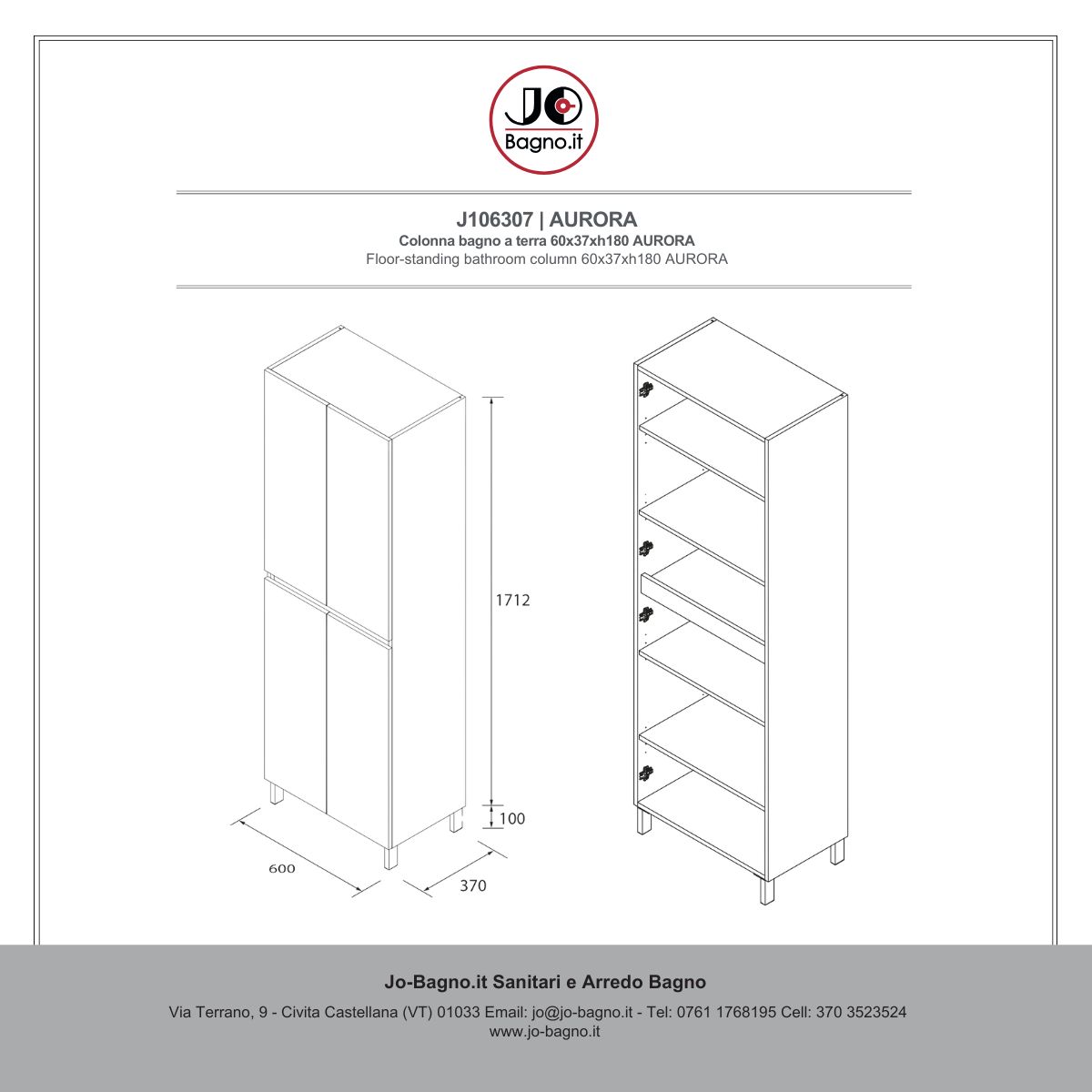 Con le sue dimensioni di 60 x 37 x 181 cm, AURORA è perfetta per qualsiasi tipo di bagno / lavanderia che sia di piccole o grandi dimensioni.