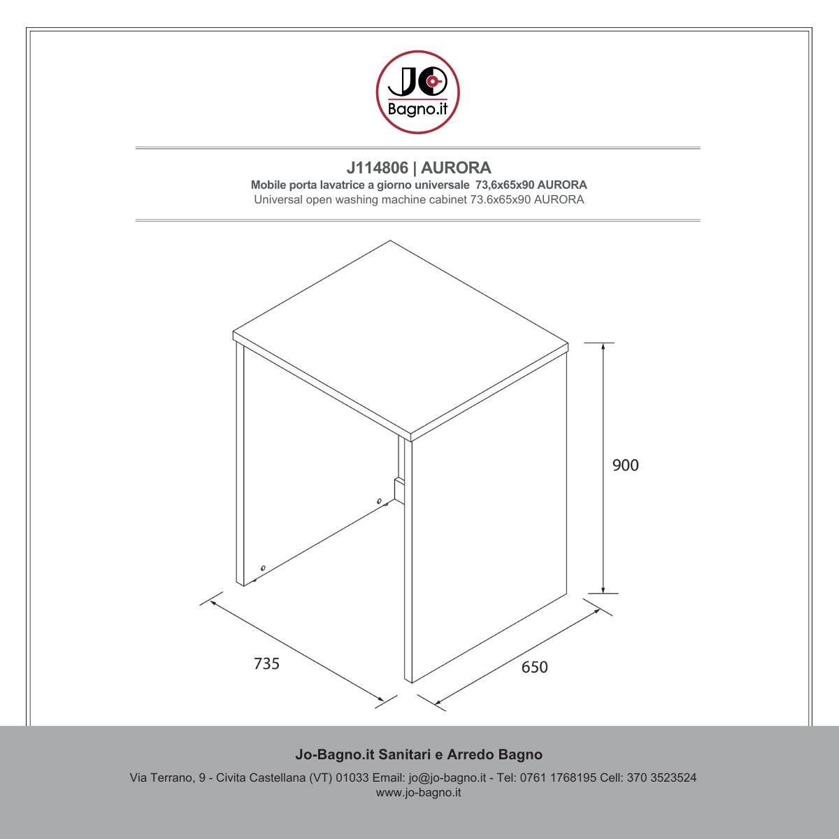 Con le sue dimensioni di 73,6 x 65 x 90 cm, AURORA è perfetta per lavatrici standard e offre il giusto equilibrio tra estetica e funzionalità.