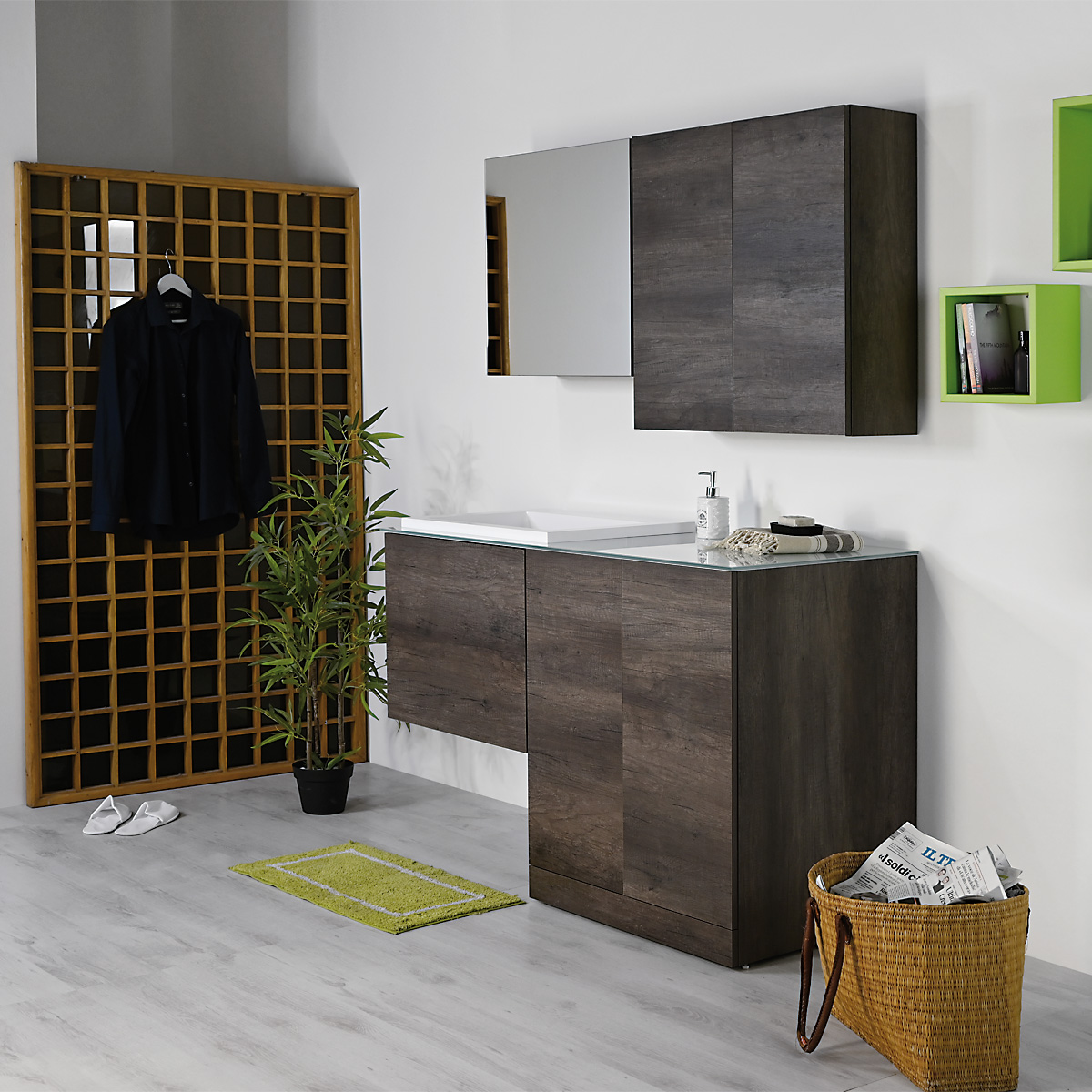 Arredo lavanderia moderno KLARA 130x60 con lavabo combinato doppio uso e profondità in acrilresin