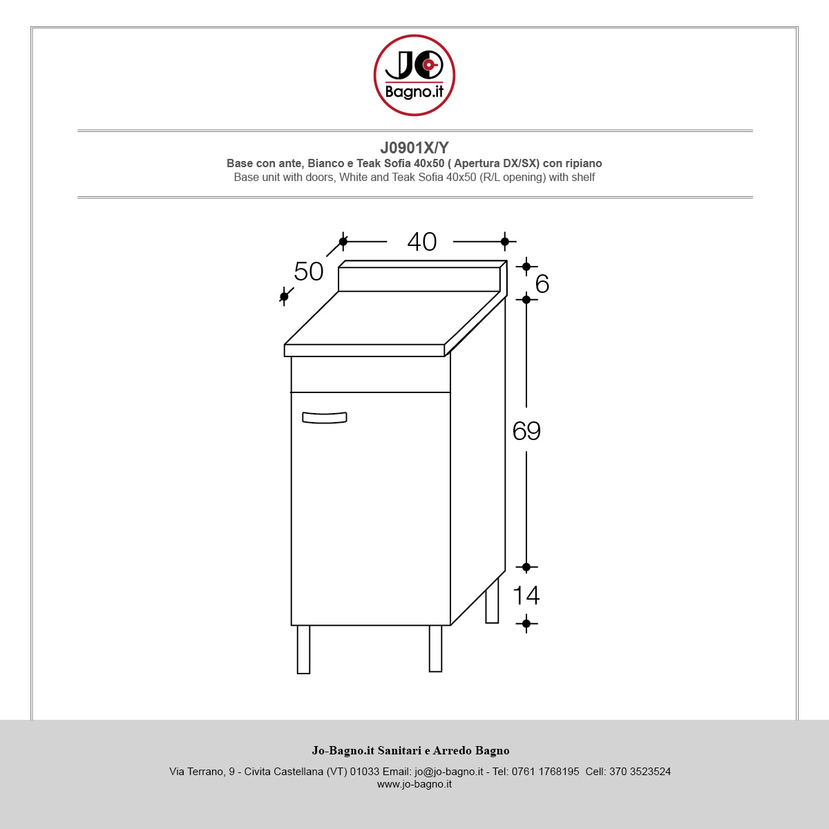 Base cucina 40 x 50 cm con anta e ripiano interno