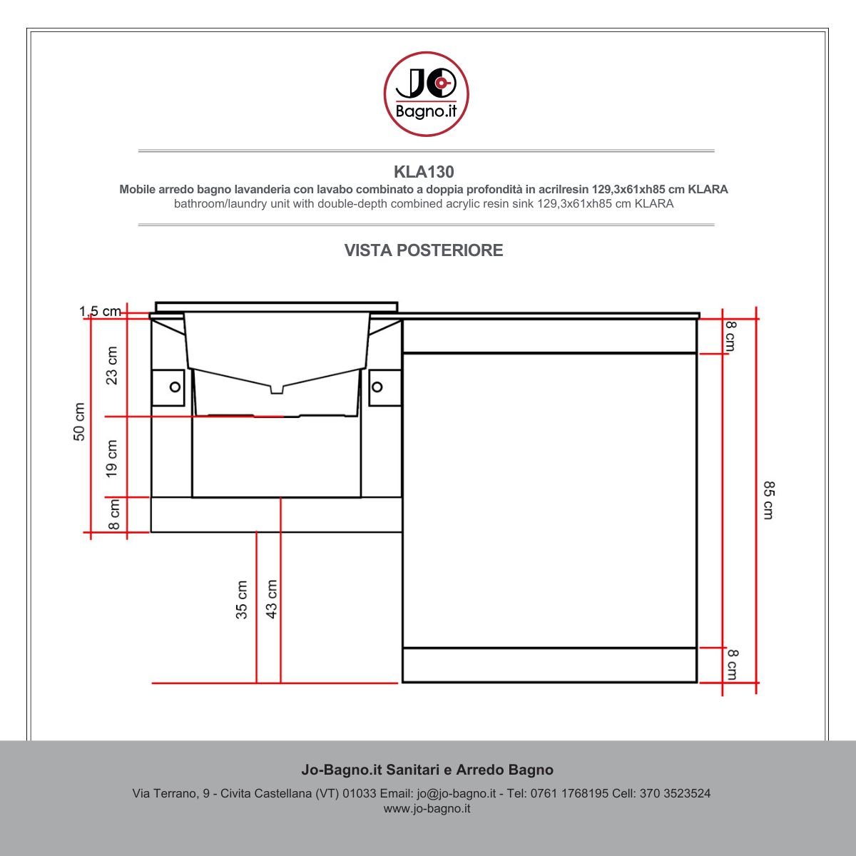 Arredo lavanderia moderno KLARA 130x60 con lavabo combinato doppio uso e profondità in acrilresin