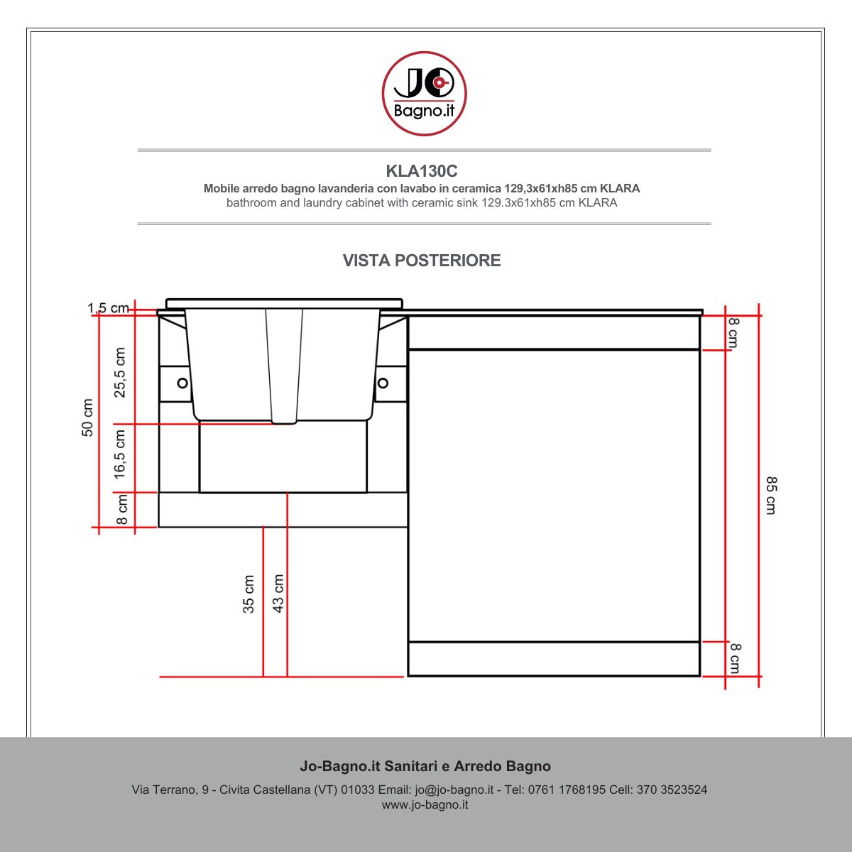 Mobile arredo bagno lavanderia KLARA 130C con lavabo in ceramica YORK