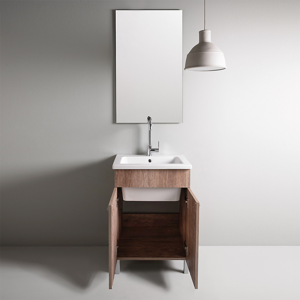 Mobile Lavatoio YORK 60x50 con Vasca in Ceramica e Mobile Design a 2 Ante Legno Wood