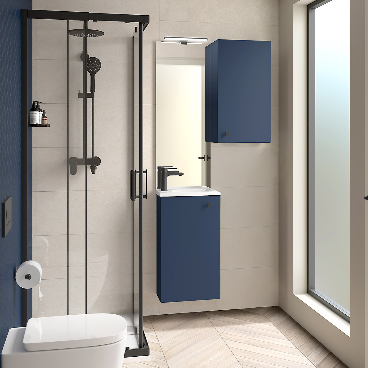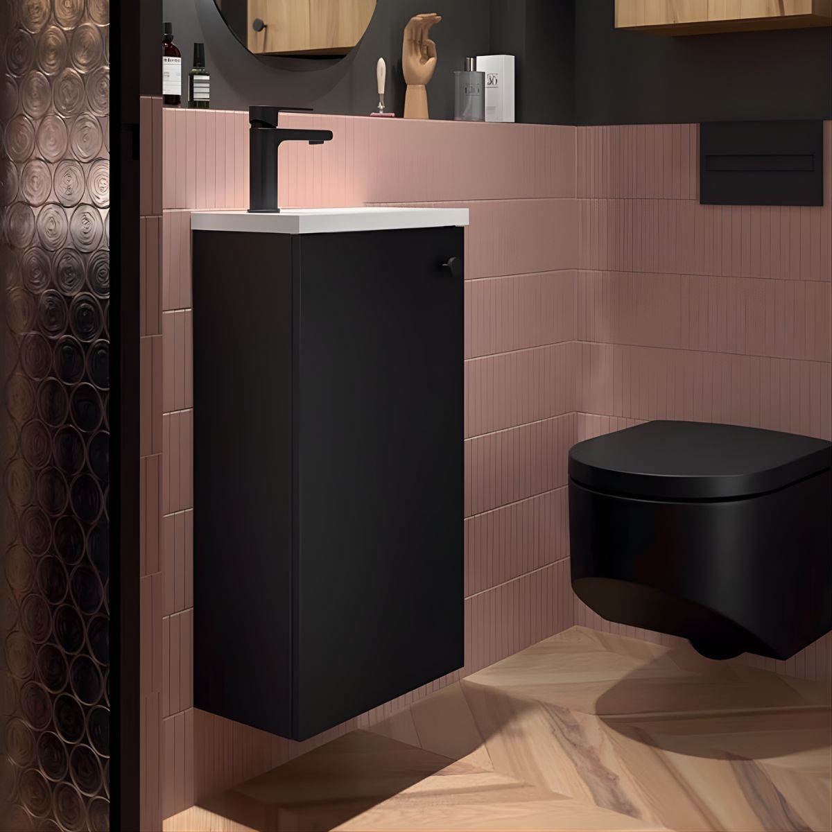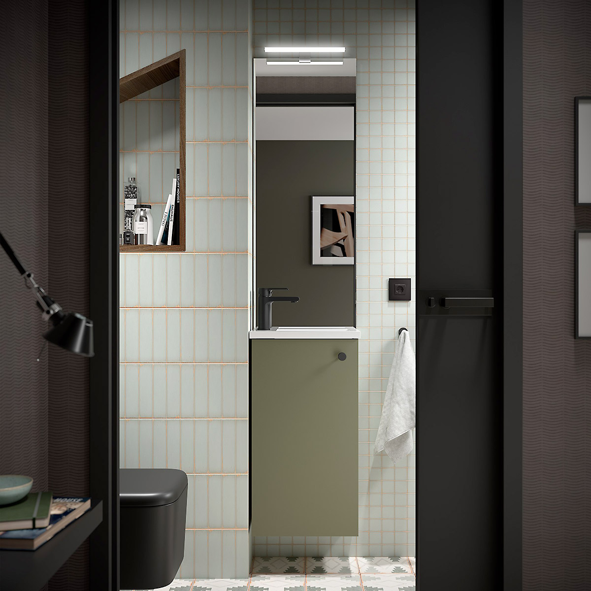 Con la sua larghezza di appena 39 cm e la profondità di 21,8 cm il modello MARBELLA è studiato per ottimizzare gli spazi nei bagni piccoli o secondari. Il design sospeso a parete alleggerisce l'ambiente e ne facilita la pulizia quotidiana, mentre le finiture raffinate e le maniglie in nero opaco donano un tocco moderno e ricercato.