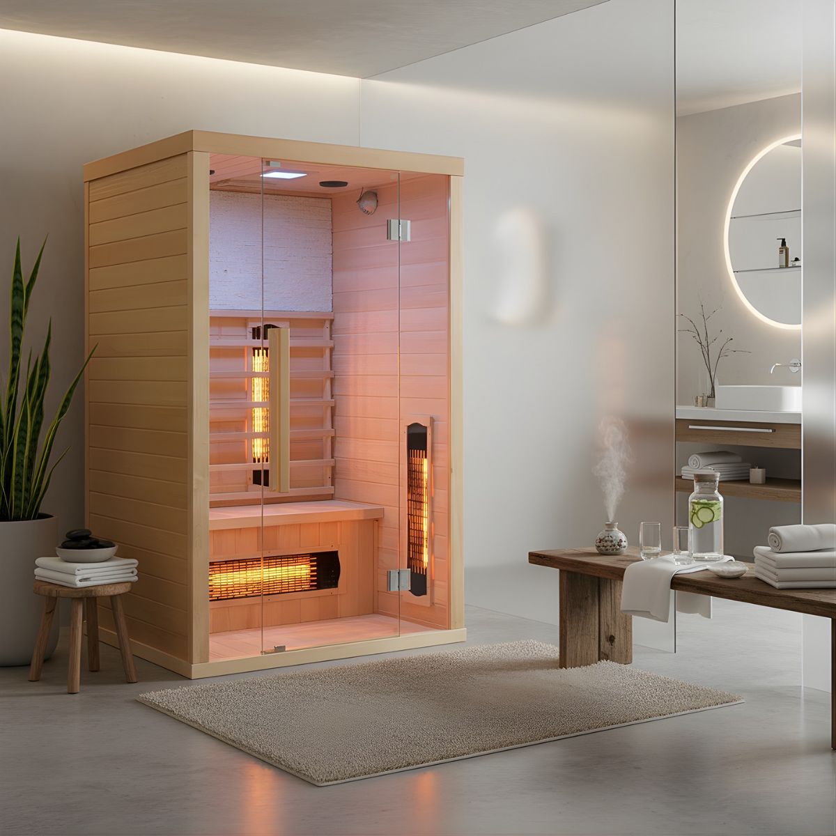Si tratta dunque, di una sorta di bagno di calore secco che fornisce una piacevole sensazione di benessere. Si ritiene che il corpo, all'interno della cabina a raggi infrarossi, assorba una maggiore quantità di calore rispetto alla sauna finlandese tradizionale.